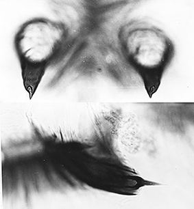 Superior volsella of the E(h)-type of Strenzke (1959). Anal point narrow at base and expanded at tip. Inferior volsellao reaching about to end of anal point. Gonostylus moderately swollen and reducing markedly over distal half. ![]() Male hypopygium (above) and details of the Inferior volsella and anal point (below) Female not described. Pupa: Length 5.5-7.5 (Fittkau 1968). A single male pupal exuvia from the Plön culture was available for more detailed analysis. ![]() Pupal cephalic tubercles (above) and spur (below) of C. strenzkei Fourth instar larva: a small plumosus-type of length 9.2-10.8 mm (fem. abt. 9.2 mm; male 9.5-10.8). Anterior ventral tubules bent and posterior ventral tubules coiled with posterior longer (ant 0.74 mm, post 0.78.mm). Lateral tubules 220 µm; anal tubules rel. long: dorsal 350 x 120 µm (l/w 2.9); ventral 380 x120 µm (l/w 3.2). Cytology: Four polytene chromosomes with the pseudothummi-cytocomplex combination BF, CD, AE, G (Wülker & Morath 1989). While obviously close to C. striatipennis, there are some significant differences. ![]() Whole complement (above) and arm G (below) of C. strenzkei Found: BRAZIL - Manaus, Amazonas (Type locality) Adult and immatures described by Al-Shami et al. (2012) as C. kiiensis may refer to this species. Molecular: The mitochondrial COI differs from that of both C. striatipennis and the sequence of the common form of C. kiiensis, as well as the recently identified taxa C. nr. kiiensis and C. kiiensis kMYTH. The sequence is found in Japan and SE Asia, but has not been found in India. The sequence of C. strenzkei is identical to that of this species, and since this taxon has no formal name, it becomes C. strenzkei (i.e. that species is not a synonym of any other member of this group). |